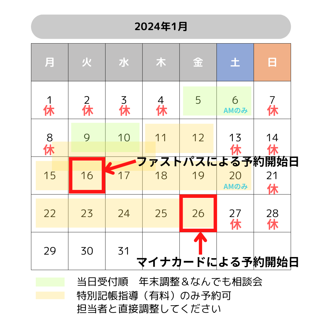 相談会2024.02.19令和5年分(2023年分)決算・確定申告相談会日程表 決算・確定申告期スケジュール 一部のカレンダーにて、2/23がお休みになっていないものがありました。訂正してお詫び申し上げます。 決算・確定申告期スケジュール 詳細 2023決算確定申告相談会カレンダーハガキ_Web用 近日中にA4ハガキで配送予定の 「令和5年分(2023年分)決算・確定申告相談会日程表」に誤りがありました。 誤: 2/27 月、2/28 火 正: 2/27 火、2/28 水 訂正してお詫び申し上げます。 なお、上記ファイルは正しいものです。