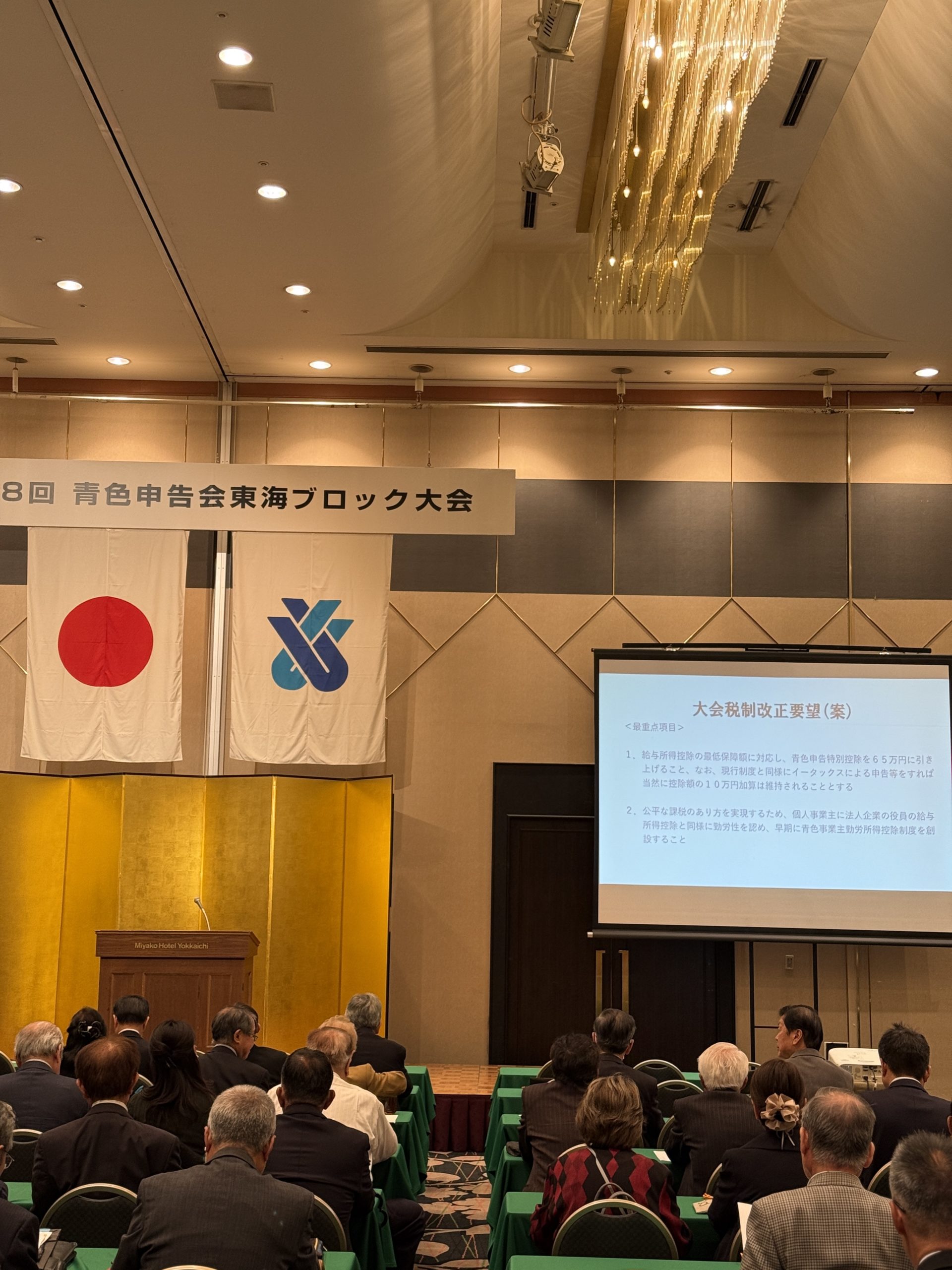 税制改正要望2025.10.242025年10月22日 東海ブロック大会に出席 青色申告会 東海ブロック大会愛知・岐阜・三重・静岡から230名を超える青色申告会関係者が集結! 会場は当番会である三重県青色申告会連合会が尽力し、都ホテル四日市にて開催されました。 第68回大会で税制改正要望を決議。事業者の声を未来へつなげます。